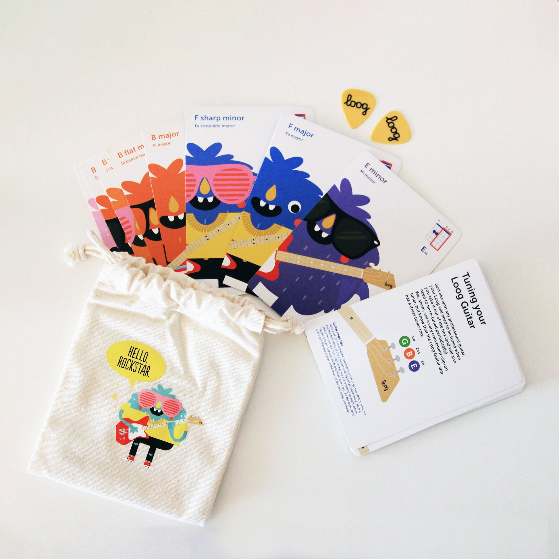 - Includes chord flashcards, free video lessons, and full access to the Loog Guitar app.